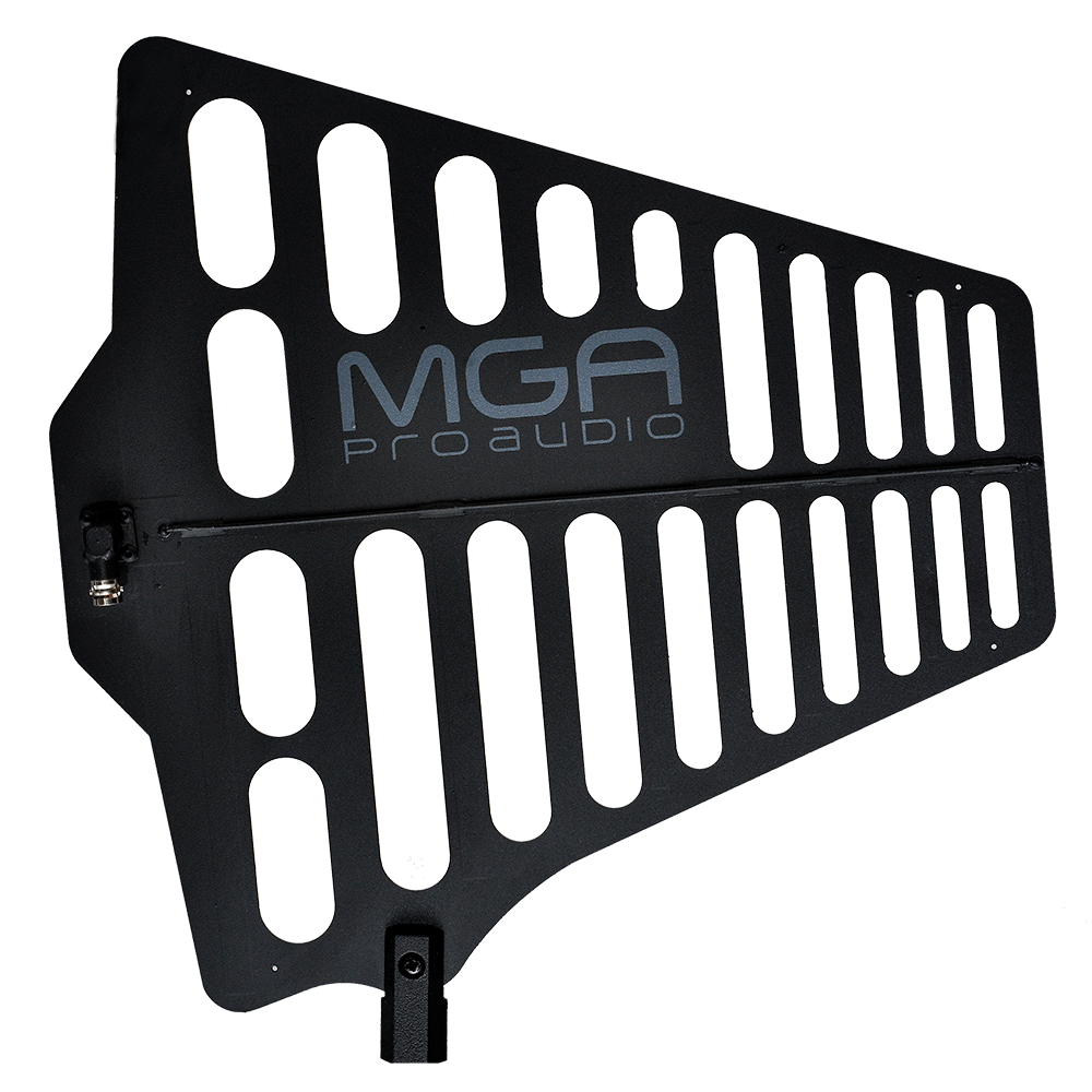 A Antena direcional passiva wideband A-1 da MGA pro áudio é projetada para operar eficientemente na faixa de frequência de 450 a 960 MHz, oferecendo um ganho de 6,5 dBi. Seu design inovador utiliza um arranjo dipolo log periódico para proporcionar uma cobertura direcional precisa e maior rejeição de sinais fora do eixo principal.